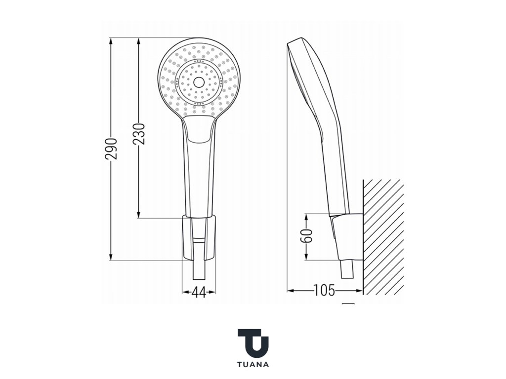 Táto ručná sprcha ponúka elegantný dizajn a praktické funkcie. S jedinou sprchovou funkciou a štandardným pripojením G 1/2" je ideálny pre každú kúpeľňu. Ručná sprcha má výšku 22,5 cm a šírku 10,5 cm, čo zaisťuje optimálne pokrytie vodou. Úchyt sprchy je vyrobený z odolného umelého materiálu a má moderný čierny povrch. Je navrhnutý pre montáž na stenu s rozmermi 6 x 4,4 cm a vyčnieva 4,2 cm od steny, čo šetrí miesto a zvyšuje pohodlie Sprchová hadica je vyrobená z kvalitného PVC a má čierny povrch. dostatočnú flexibilitu. Hadica je vybavená mosadznými koncovkami a antitwist systémom, ktorý zabraňuje krúteniu. Hladký povrch hadice sa ľahko čistí a elastický materiál je odolný voči rozťahovaniu a ohýbaniu. produktu.