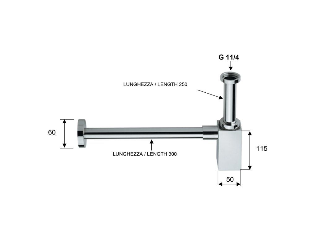 Umývadlový sifón 5/4", DN 32/300 mm, hranatý, zlato