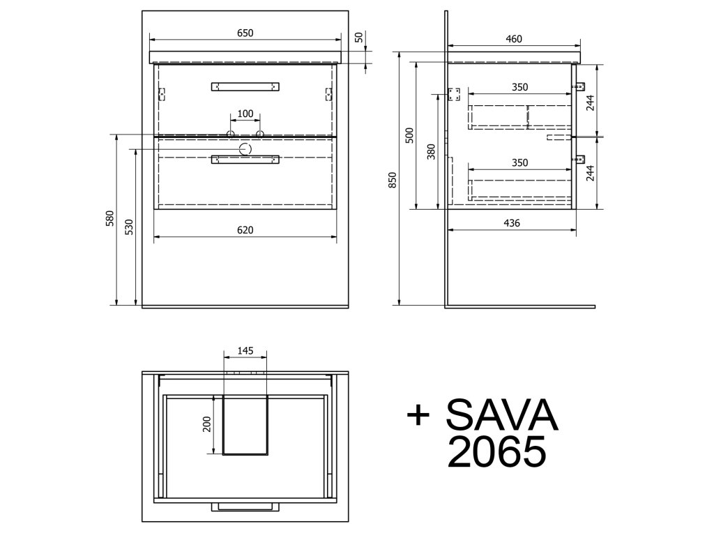 VEGA umývadlová skrinka VG064 - 62x50x43, 6 cm, 2xzásuvka, biela